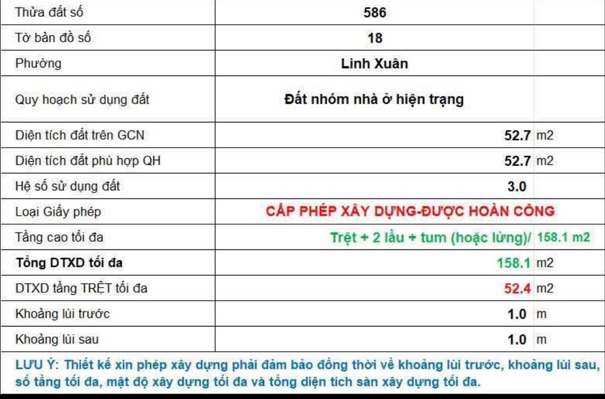 Thông số bất động sản