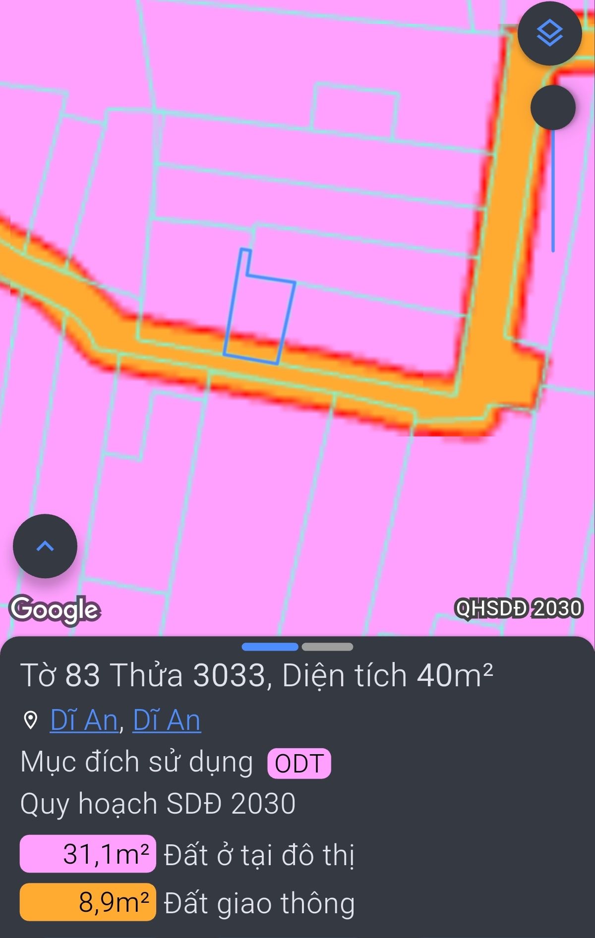 DT đất ở công nhận: 40m²